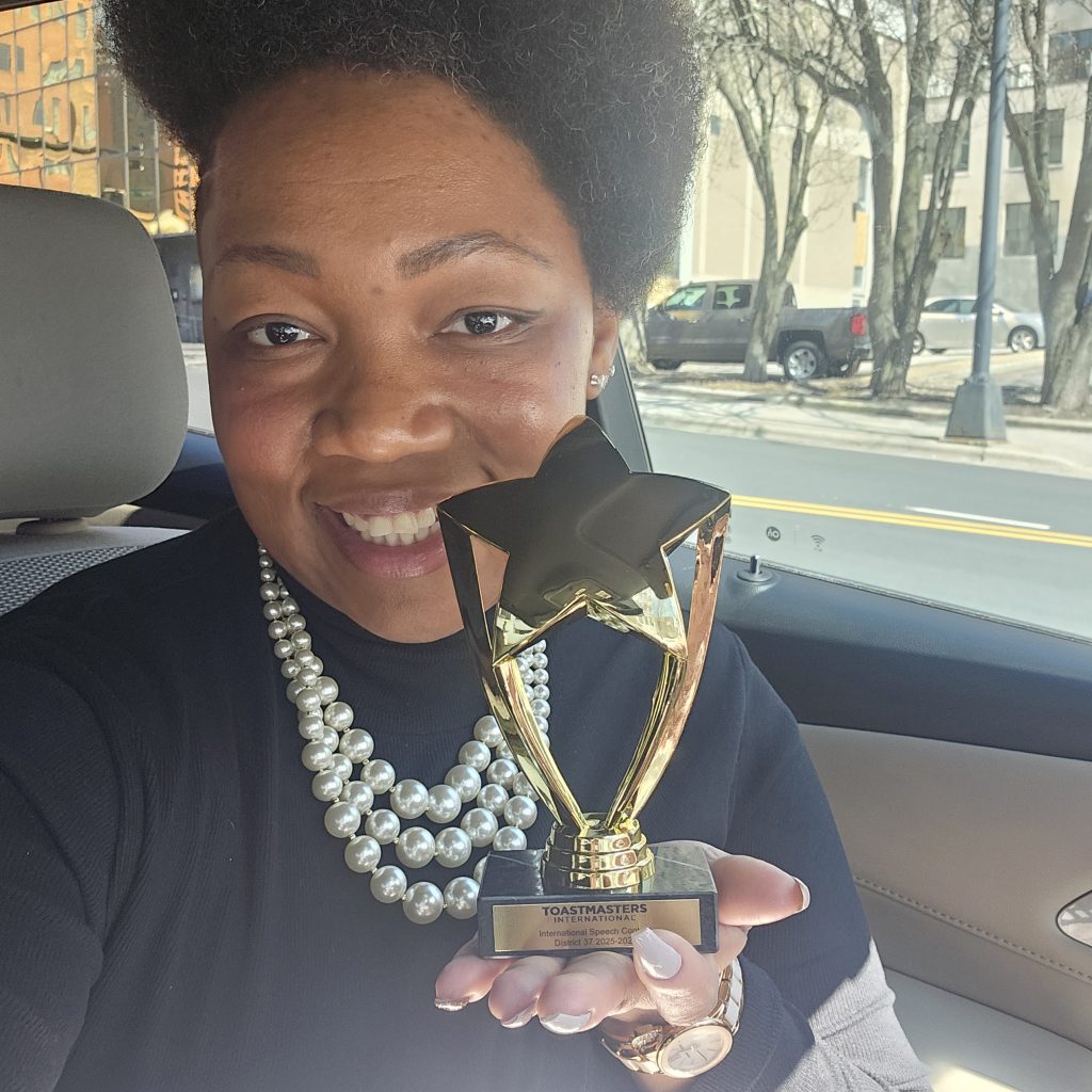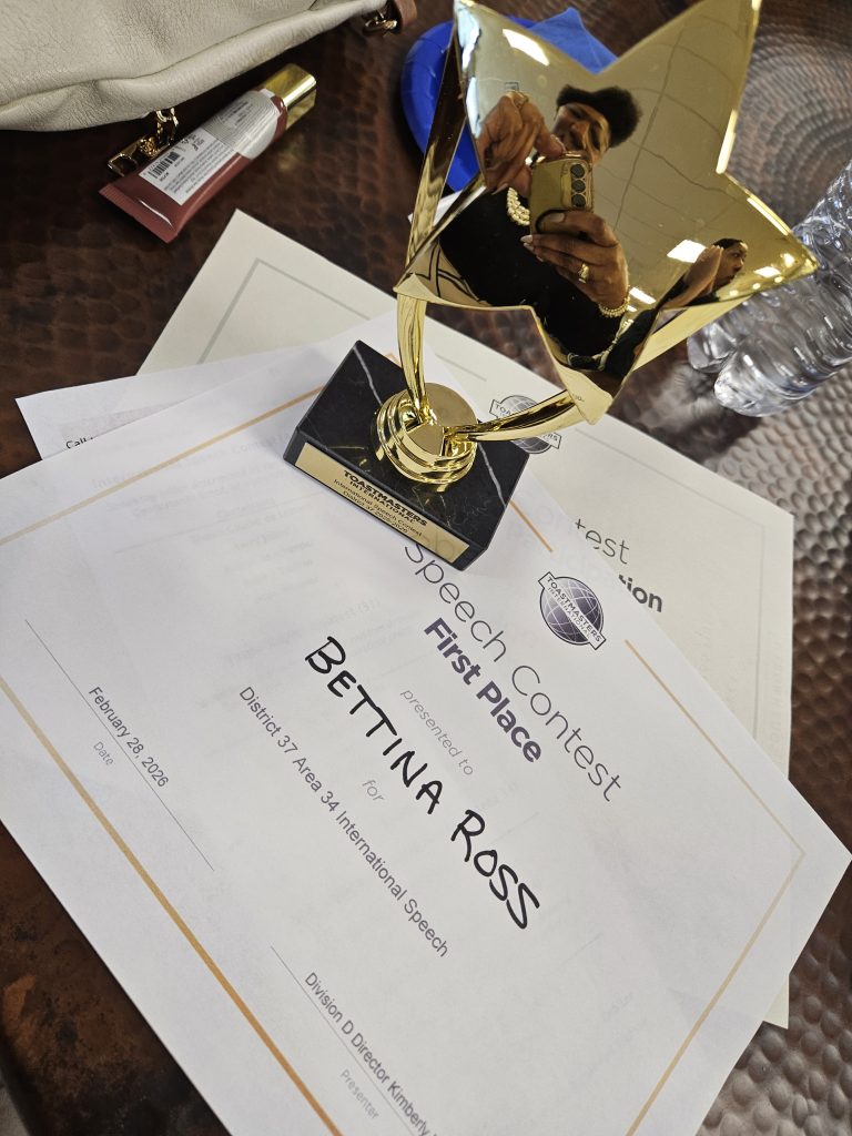 Congratulations to Sunrise Toastmaster Bettina (Tina Joe) Ross for her outstanding performance at the 2026 Area 31/34 International Speech Competition! Tina Joe won first place for her speech titled “Permission to Exist Beyond Survival,” and she will advance to the Division competition to be held on April 11. Her Sunrise Toastmasters family is aware of how much work and practice she put into her presentation and we could not be more proud of her accomplishment. Way to go, Tina Joe!!